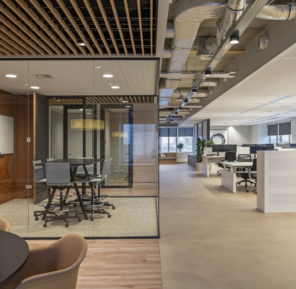 From bold interventions up to the details, the design perfectly aligns with the rather straightforward building core & shell, transforming the space from an ordinary office floor to a dynamic work environment that represents the company’s identity.