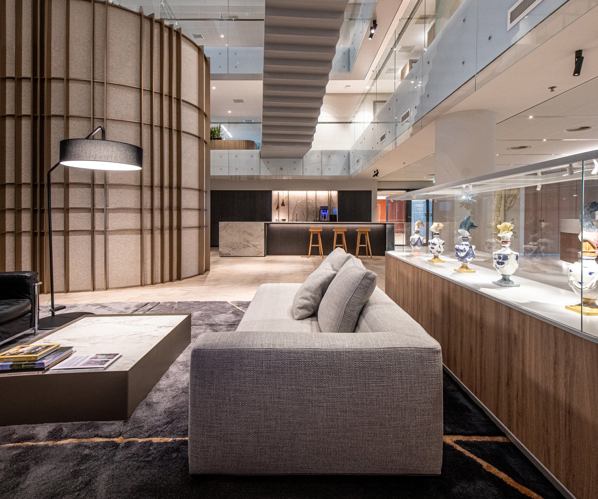 What sets this project apart is the diversity in the appearance and function of the central community areas. The renovation of the Houthoff office in Amsterdam successfully combines elements from the original Rotterdam design with new additions, such as the integration of Houthoff’s art collection. With meticulous attention to detail and strategic design choices, the sizable 12,500 m2 interior has become a vibrant workplace while maintaining a sense of intimacy. With diverse gathering areas and a focus on employee comfort, the Houthoff Amsterdam office exemplifies a user-centric workplace design.